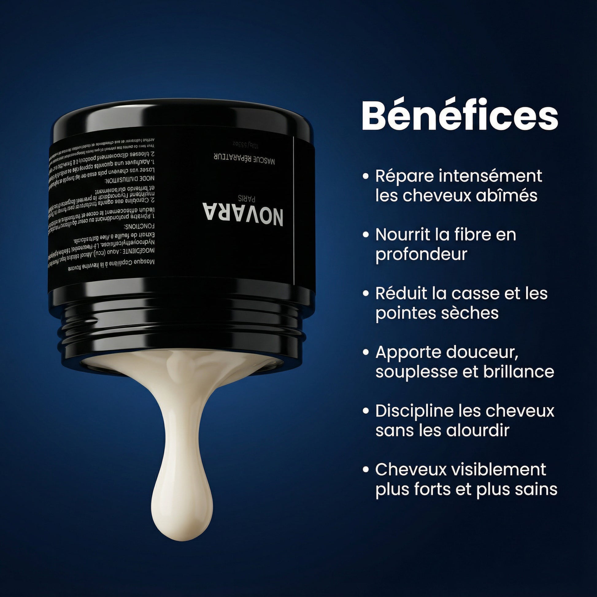 Oui, NOVARA convient à tous les types de cheveux, des plus fins aux plus épais. Sa texture shampooing permet une application facile de la racine aux pointes.